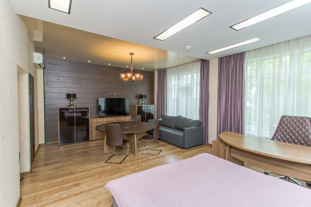 Гостям доступен Smart TV, кондиционер, Wi-Fi, полный набор полотенец, спальни, санузел, гладильные принадлежности и фен