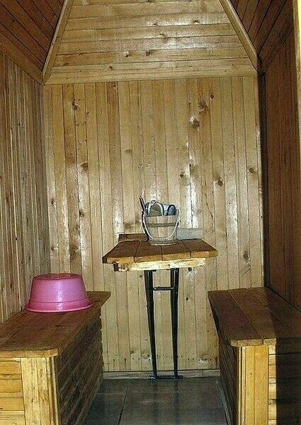 2-х этажный деревянный дом, состоящий из трех 2-3 местных комнат, с двумя балконами, большой верандой, оборудованной кухней-столовой (холодильник, печь, посуда, микроволновка), душа-туалета и большого холла с ТВ. Предоставляется белье.