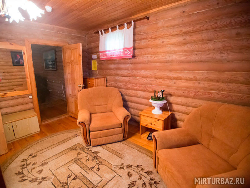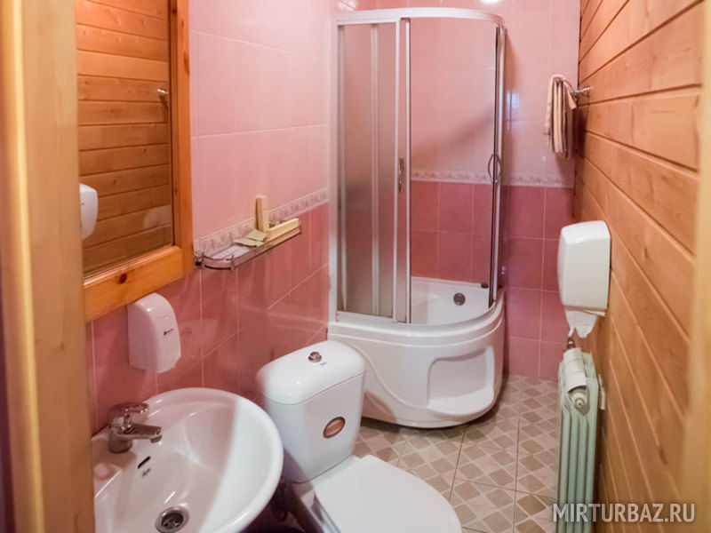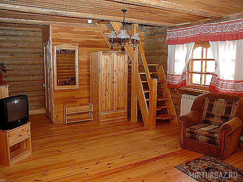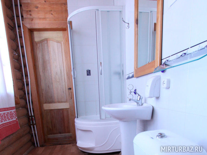 Номер - комната в деревянном двухэтажный коттедже. Всего в домике имеется восемь комнат "Эконом": на первом этаже - четыре комнаты "Эконом" и совместный туалет/душ, на втором этаже — четыре комнаты "Эконом" и совместный туалет/душ.