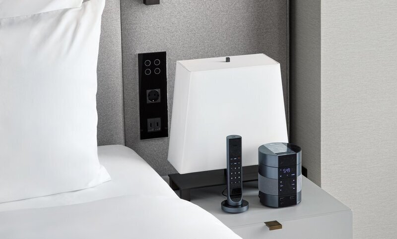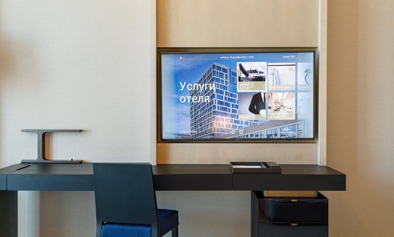 Управление освещением, кондиционером, шторами и теплым полом осушествляется с кнопок. Так же кнопками можно включить режимы "не беспокоить", "требуется уборка"