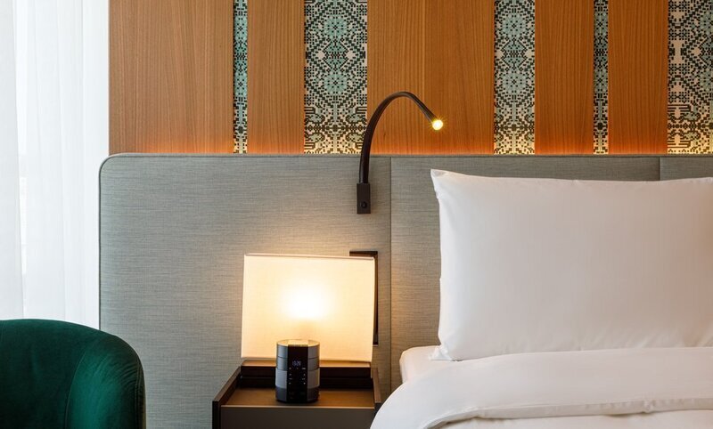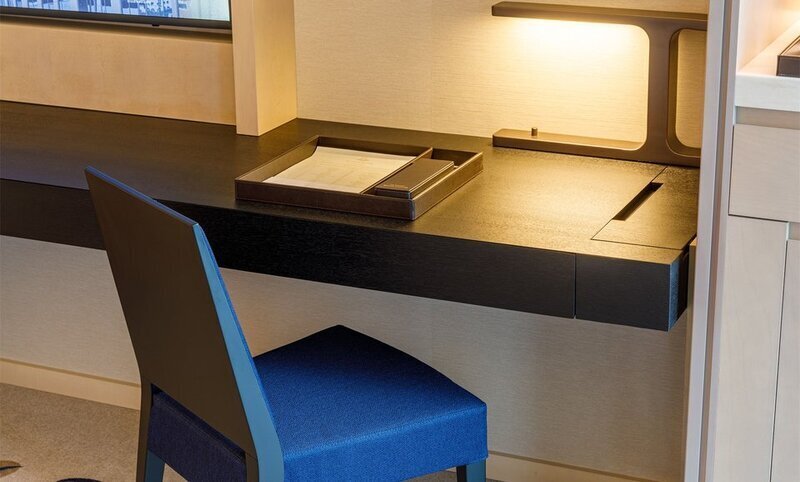 Вообще, везде в отеле очень приятные мебель и дизайн. Простые формы, но без скатывания в офисный, нежилой стиль. Мебель комфортная.