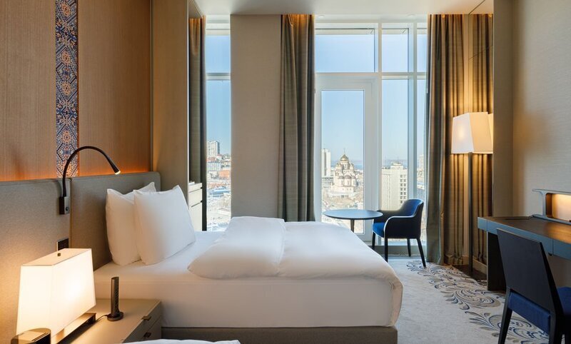 Пятизвездочный отель «Vladivostok Grand Hotel & SPA» с элегантной атмосферой удобно расположен на берегу бухты Золотой Рог в историческом сердце Владивостока. Его репутация высоко ценится как бизнес-гостями, так и туристами, посещающими столицу Приморья.
