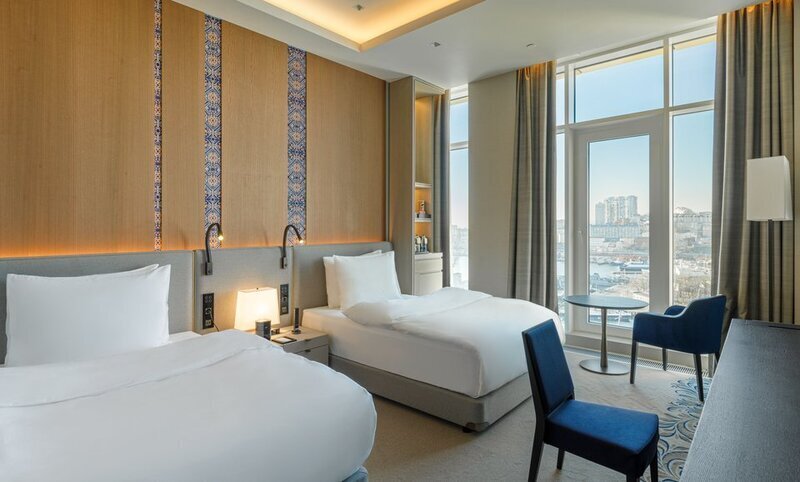 Путешествие с паройЗдесь на гостях не экономят.Сдержаная роскошь с достоинством. В СПА ходить обязательно!!! 25-метровый бассейн на 3 дорожки, пузырьковые горячие бассейны, нереально огромная сауна с панорамными окнами на мост над бухтой Золотой Рог и шириной полок не меньше 1,5 метров. Хамам тоже хорош. Подогреваемые лежаки для максимального релакса. В раздевалке фены Дайсон и парфюм от Монталь. Очень высокие потолки.