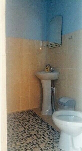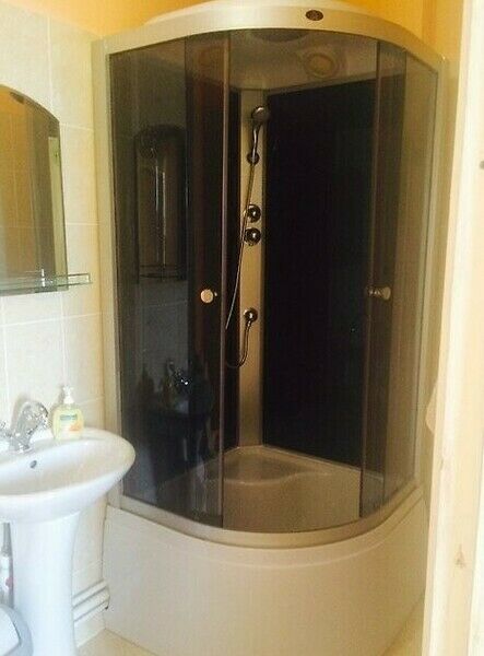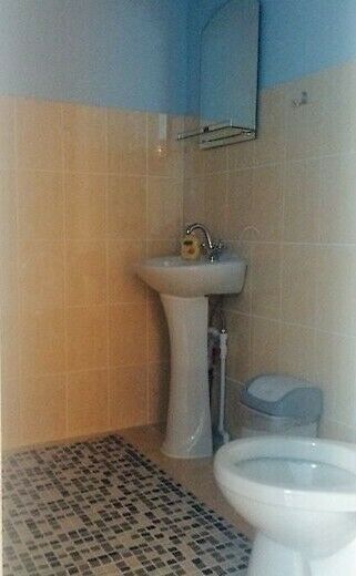 В номере одна двухъярусная кровать, одна полутороспальная кровать, тумбочки, ж/к телевизор, холодильник, шкаф, стол, стулья, чайник, чайные пары, графин, стаканы,туалет, душ – в номере.