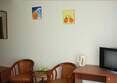 Двухкомнатный номер оборудован двуспальной кроватью, раскладным диваном, двумя креслами, журнальным столиком, письменным столом со стулом, телевизором, холодильником, чайником и посудой.