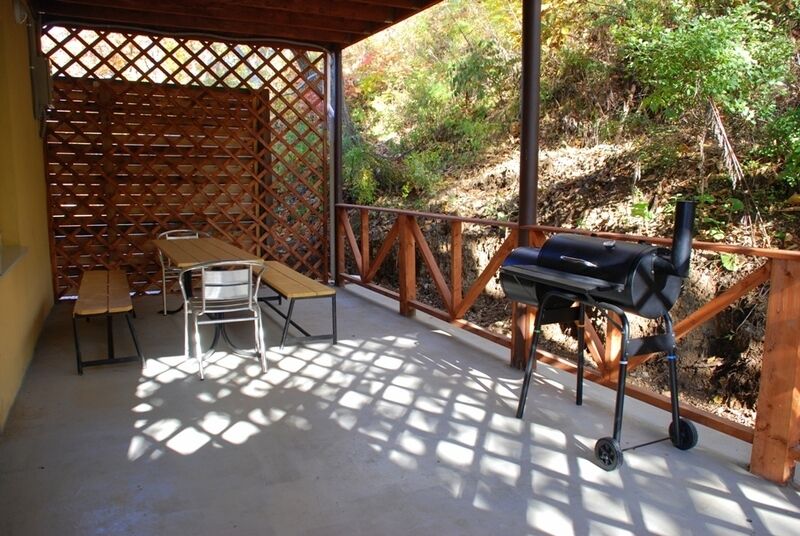 Номер состоит из двух комнат, и крытой зоны барбекю.