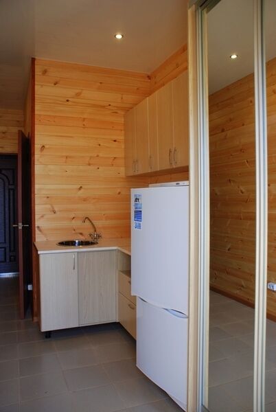 6-ти местные домики:(двухэтажный круглогодичный): 1 этаж - гостиная-столовая (стол, стулья), 2 этаж - спальня (односпальные или двуспальные кровати). Дом имеет веранду, оборудованную столами и лавками.