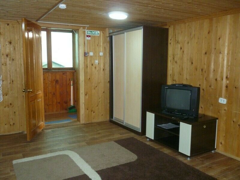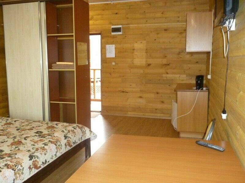 В номере есть: мягкая мебель, стол, шкаф, телевизор, холодильник, м/в печь, чайник, 2-х спальная кровать, тумбочка, комод; туалет, душевая кабина, умывальник (вода горячая, холодная); зона барбекю с мангалом на 10 человек.