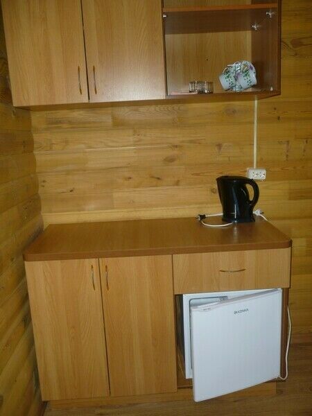 В номере: стол, шкаф, телевизор, холодильник, м/в печь, чайник, две 2-х спальные кровати, туалет, умывальник (вода горячая, холодная), душевая кабина; зона барбекю с мангалом на 10 человек.