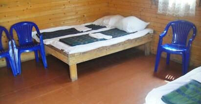 Небольшие комнаты оборудованы двуспальной кроватью (либо две односпальные по желанию гостей), стульчиками и столом. В номере имеется туалет, душ и умывальник (вода только холодная). Постельные принадлежности прилагаются.