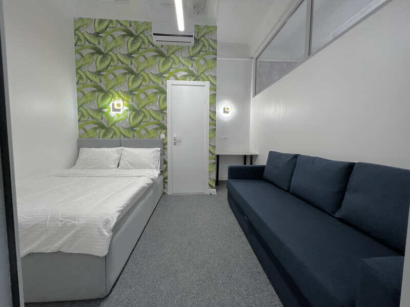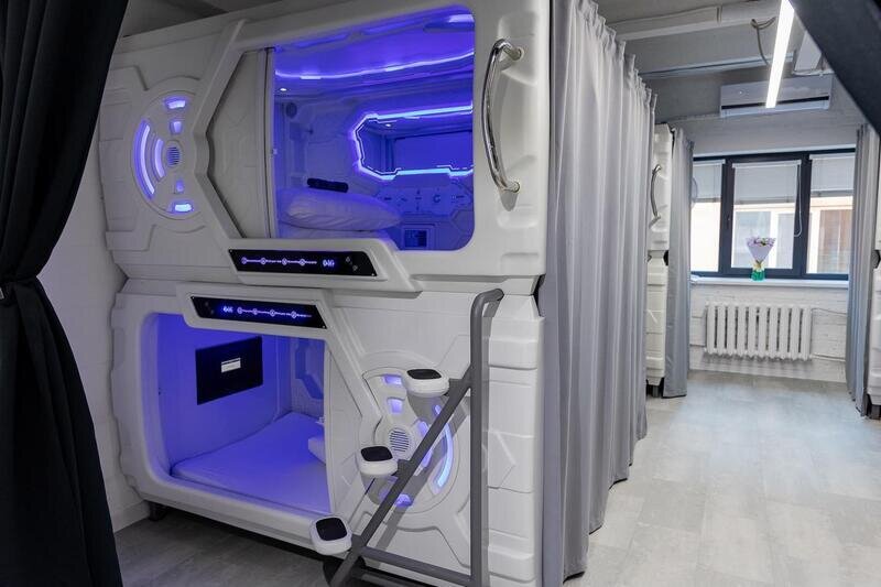 Отель предлагает различные категории комнат, от персональных просторных номеров с удобными кроватями и собственной ванной комнатой до общих номеров-капсул. Во всех номерах предусмотрены все необходимые удобства и техника для комфортного проживания. Для гостей, желающих готовить еду самостоятельно, доступна общая кухня с посудой и обеденной зоной.