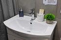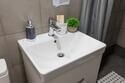2-спальная кровать, телевизор, тумбочка, душевая, туалет и раковина.