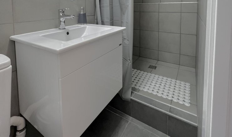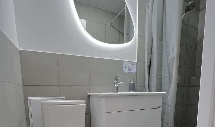 2-спальная кровать, раскладной диван, телевизор, тумбочка, столик, душевая, туалет и раковина