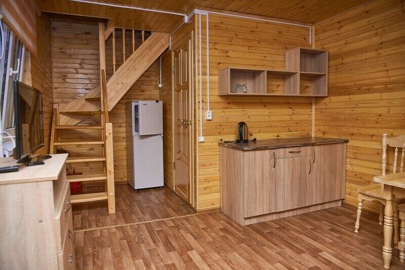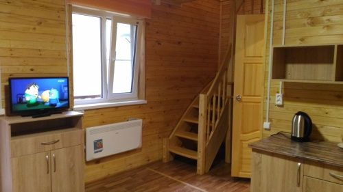 3-местный двухуровневый номер в коттедже. На 1 этаже комната отдыха (телевизор, холодильник, чайник), туалет, душ. На 2 этаже спальня.