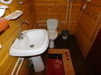 В номере две односпальные кровати, шкаф, холодильник, раковина для умывания, туалет.