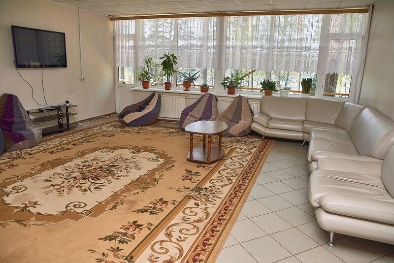 В главном холле на втором этаже корпуса есть плазменная панель, уютные диваны для отдыха.