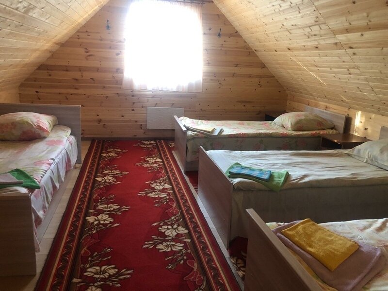 НедостаткиДалеко от озера( до хорошего пляжа ехать на машине 30 минут, до каменистого 15минут), мало развлечений для детей(качель и канат есть), хотя бы песочница ещё была.