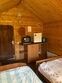 В коттедже есть спальня и гостиная, в спальне 2-х спальная кровать, в гостиной 1,5 спальный раздвижной диван. Имеется телевизор, холодильник, микроволновая печь, шкаф. Душ и туалет в коттедже. Отопление - печь-камин и электрические обогреватели. В коттедже есть сауна (баня).