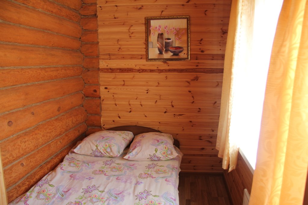 8 уютных деревянных двухместных домиков. В домике 2 кровати, тумбочки, холодильник, электрический обогреватель. Удобства - душ, туалет, умывальник в отдельном здании, 20 м от домиков.