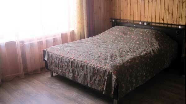 Просторная комната с отдельной нишей, в которой стоит раскладной диван, предназначенный для ребенка. Впрочем, диван полно-размерный, на нем вполне может спать и взрослый человек. В номере два окна через которые открывается прекрасный вид на озеро и на территорию базы отдыха. В номере есть большой вместительный холодильник, телевизор.