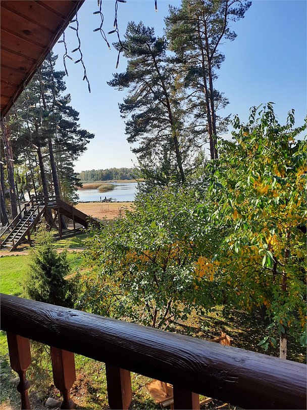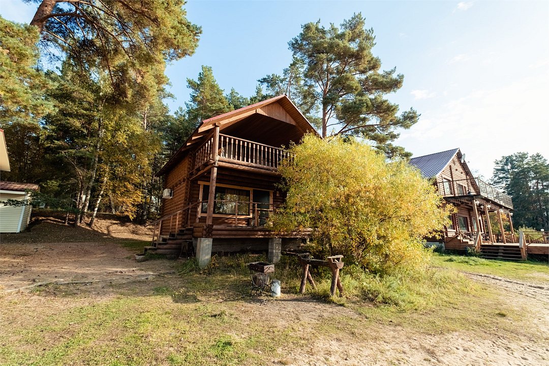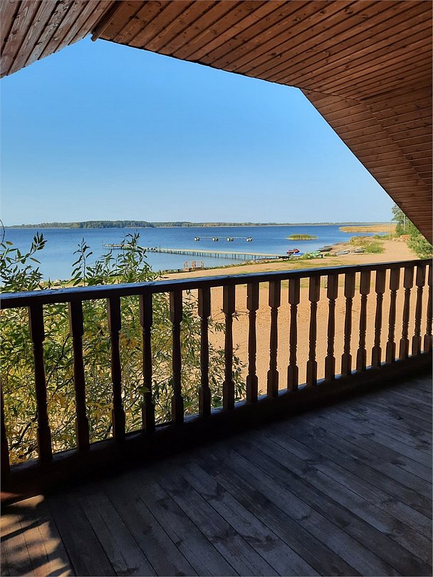 Коттедж на 4+2 чел* Первая линия. Прямой выход к озеру. Отдельный пляж. Часть деревянного коттеджа с отдельным входом, общей площадью 32 кв.м., подойдет для комфортного проживания семьи с детьми. В коттедже на 1 этаже расположены: гостиная с удобным разбирающимся диваном и обеденным столом, кухонная зона, сан. узел, терраса с уличной мебелью и выходом к озеру. На 2 этаже расположены две спальни: одна с двуспальной и одна с двумя односпальными кроватями, а также просторный балкон с уличной мебелью и прекрасным видом на озеро. Мангальная зона у каждого коттеджа.Услуги и удобства