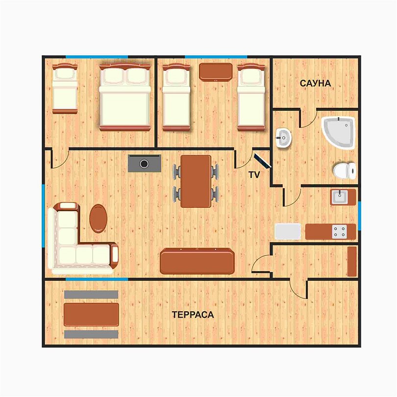 56 м2 · 6-и местный коттедж + 2 доп. места