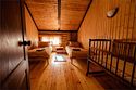 Коттедж на 6+2 чел* Деревянный двухэтажный коттедж, общей площадью 56 кв.м., расположенный на первой линии, подойдет для комфортного проживания большой семьи или небольшой компании. В коттедже на 1 этаже расположены гостиная с удобным разбирающимся диваном, журнальным столиком и камином, обеденный стол, кухонная зона, сан. узел, терраса с уличной мебелью. На 2 этаже расположены три спальни: одна с двуспальной и односпальной кроватями, одна с двумя односпальными и одна с одной односпальной кроватью, а также просторный балкон с уличной мебелью и прекрасным видом на озеро. Мангальная зона у каждого коттеджа. В коттедже автономная система отопления.Услуги и удобства