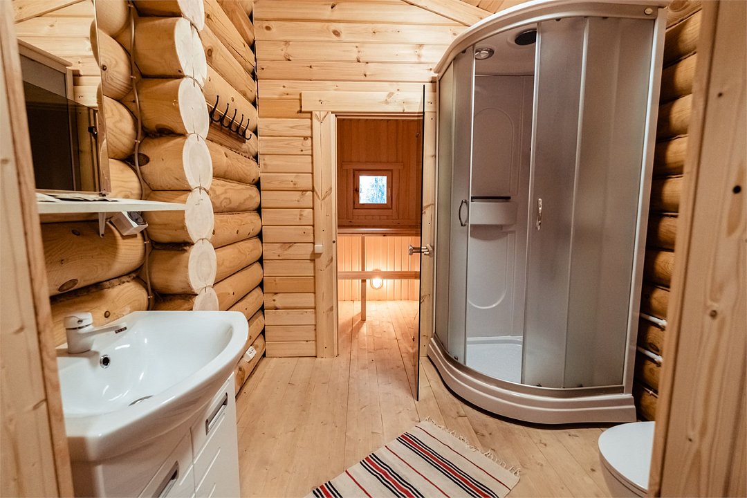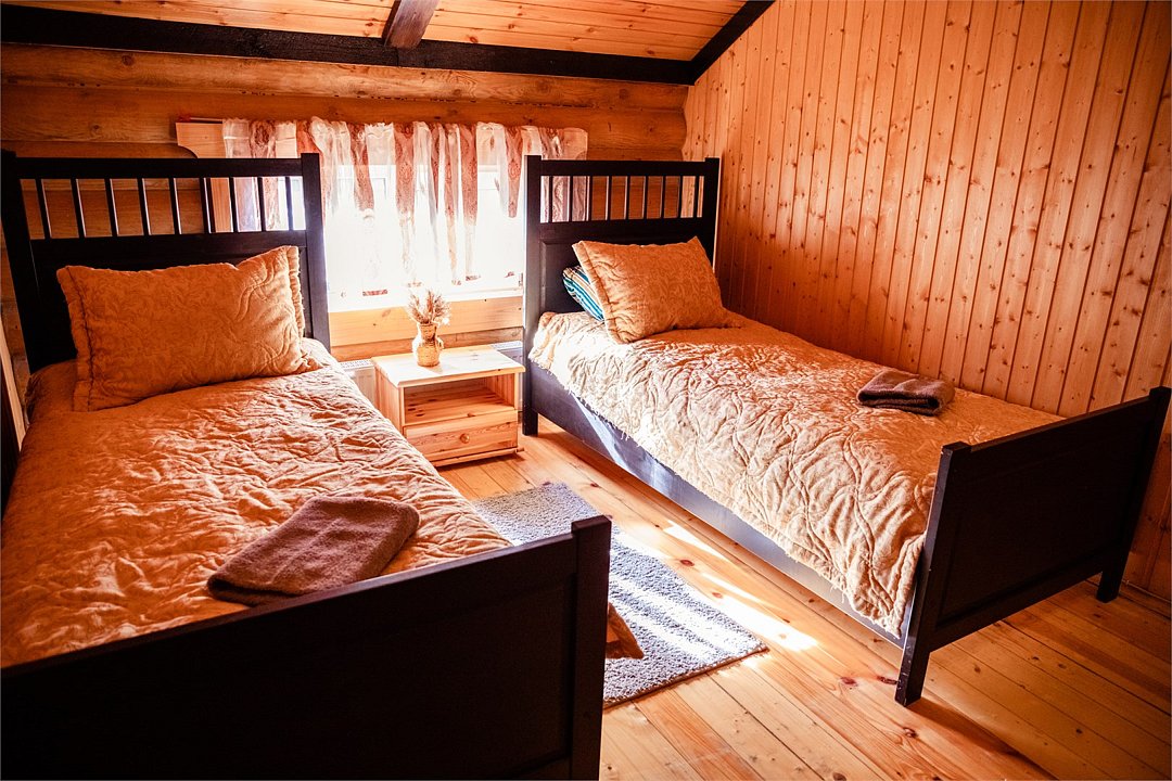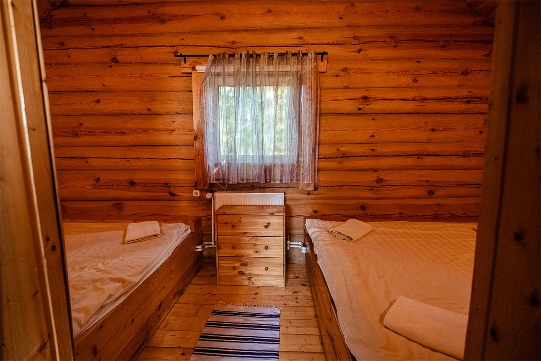 Wi-Fi, светильник, обогреватель, две односпальные или большая двуспальная кровать, стулья, вешалки, комод, ковер, раковина, отопление, душ, стол, туалет, москитная сетка, вид на лес, без питомцевВ гостиничном номере