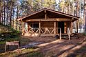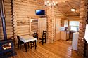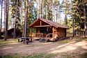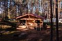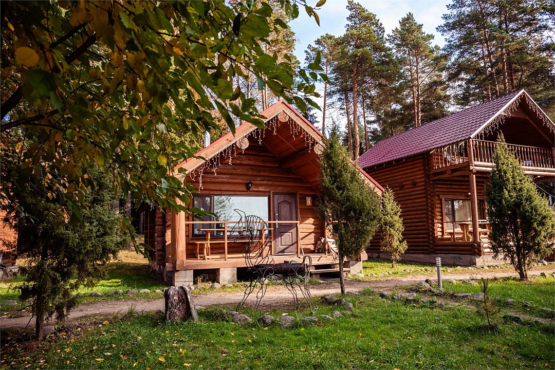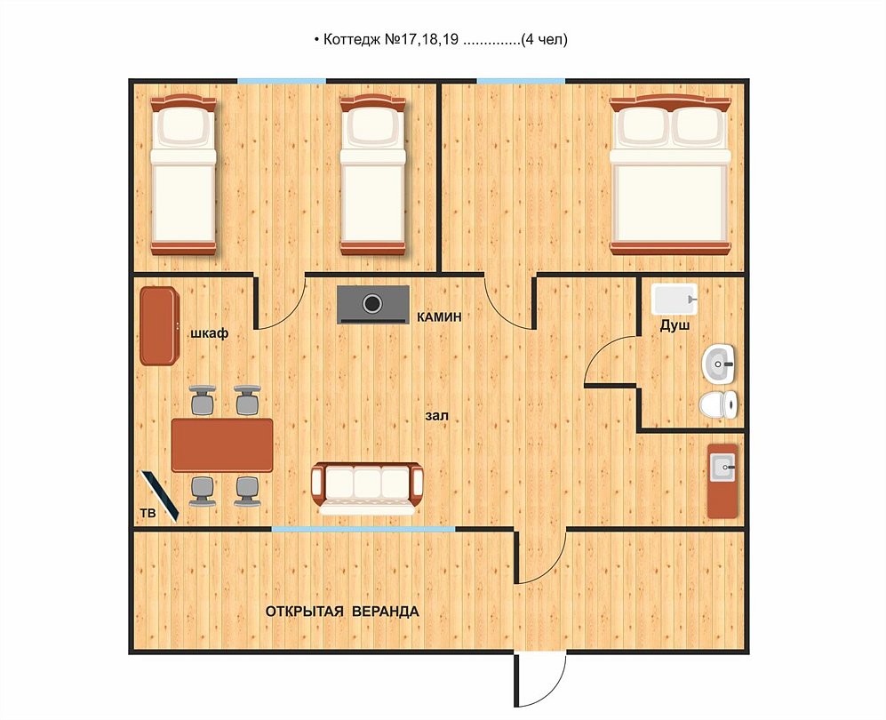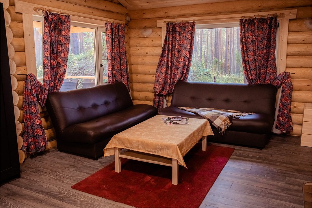Коттедж №17,18,19 (4 чел). Уютный деревянный коттедж на 4 человека, расположенный в лесной зоне, подойдет для комфортного проживания семьи с детьми. В коттедже расположены гостиная с обеденным столом, кухонная зона, две спальни (одна с двуспальной кроватью, вторая с двумя односпальными), санузел с душевой кабиной и терраса с уличной мебелью. Мангальная зона у каждого коттеджа.Услуги и удобства