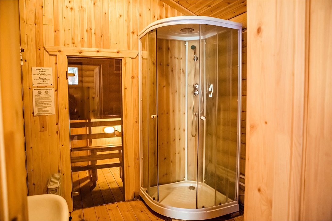 Коттедж на 8+2 чел* Деревянный двухэтажный коттедж с сауной, общей площадью 75 кв.м., расположенный в лесной части базы отдыха, подойдет для комфортного проживания большой семьи или небольшой компании. В коттедже на 1 этаже расположены гостиная с удобным разбирающимся диваном, журнальным столиком и камином, кухонная зона, спальня с двуспальной кроватью, сан. узел, сауна ( 3 часа в день), терраса с уличной мебелью. На 2 этаже расположены три спальни: одна с двуспальной кроватью и две с двумя односпальными кроватями, а также просторный балкон с уличной мебелью и прекрасным видом на лес. Новая деревянная и кожаная мебель, стеклопакеты с антимоскитными сетками. Мангальная зона у каждого коттеджа.Услуги и удобства