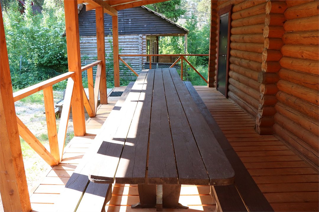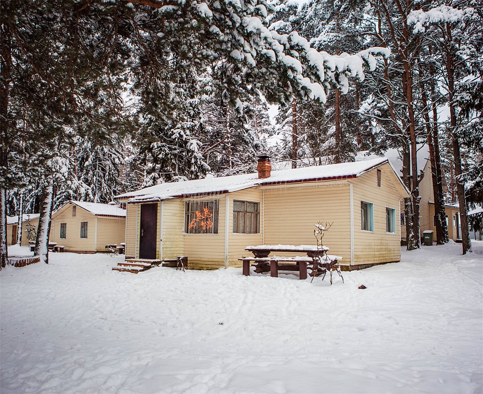 Дом общей площадью 50 кв.м., расположенный в самом центре базы отдыха, подойдет для комфортного проживания большой семьи или компании.В доме расположены четыре спальни: одна с двуспальной кроватью, две спальни с тремя односпальными кроватями, одна спальня с двумя односпальными кроватями, сан. узел, большая веранда с обеденным столом, телевизором и кухонной зоной. Мангальная зона у каждого коттеджа.Услуги и удобства