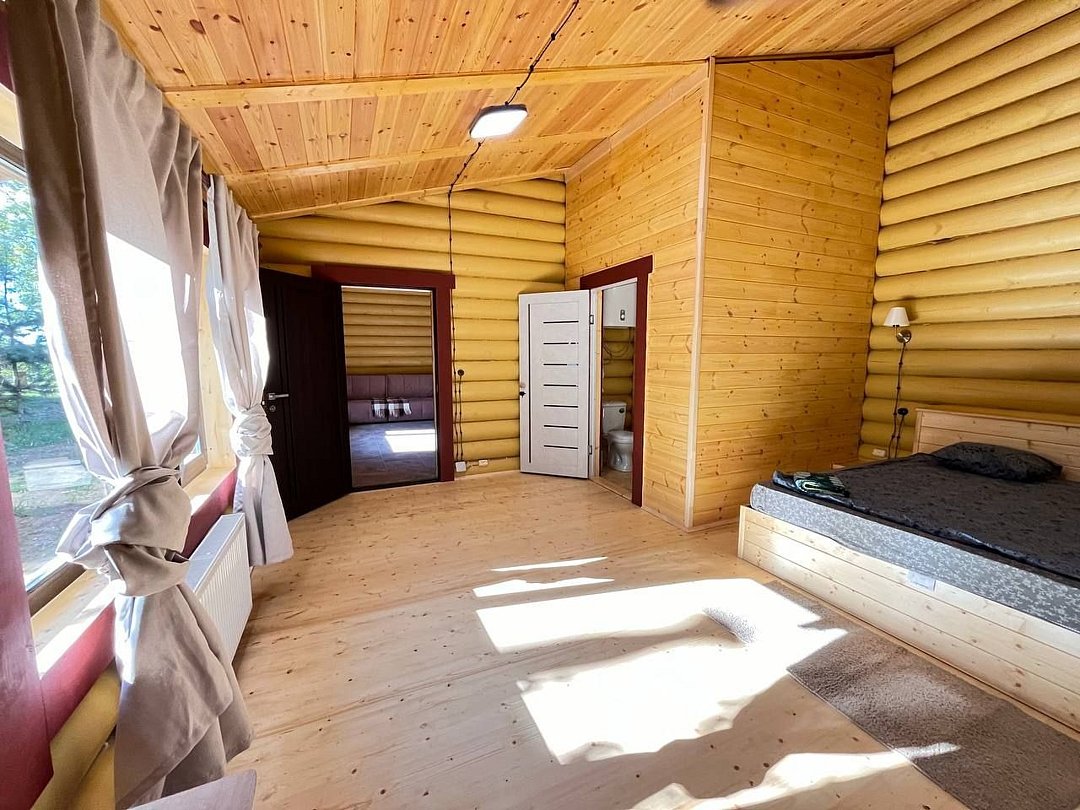 Коттедж на 9+2 чел* Прямой выход к озеру. Отдельный пляж. Прекрасный вид на озеро. Деревянный двухэтажный коттедж с сауной , общей площадью 190 кв.м., подойдет для комфортного проживания большой компании. В коттедже на 1 этаже расположены: гостиная с удобным разбирающимся диваном, журнальным и обеденным столом, кухонная зона, сан. узел, сауна( 3 часа в день), спальня с двумя односпальными кроватями. На 2 этаже расположены три спальни: две с двуспальными и одна с двумя односпальными кроватями. Мангальная зона у каждого коттеджа.Услуги и удобства