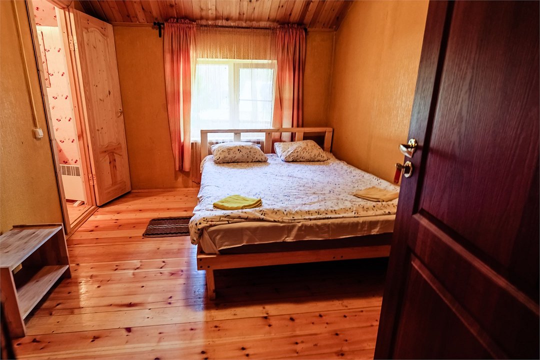 Размещение с ЖИВОТНЫМИ ЗАРЕЩЕНО. Двухместный номер – уютный гостиничный номер, одна двуспальная или две односпальные кровати (уточняйте при бронировании) и тумбочка. Оборудование: электрообогреватель. Сан. узел. (туалет и душ) в номере. Общая кухня с электроплиткой, холодильником и электрочайником. Посуда отсутствует. Мангал, уличная мебель.Услуги и удобства