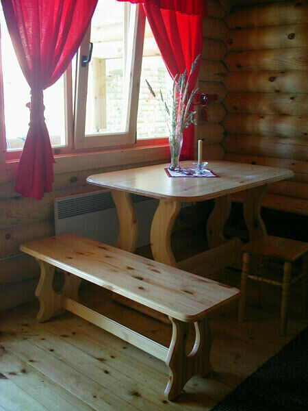 гостиная с камином; две спальни; кухня, оснащенная все необходимым для приготовления и хранения пищи; спутниковое ТВ; душ; туалет; собственная сауна.
