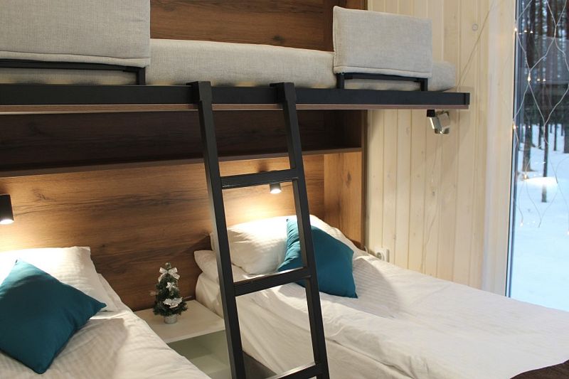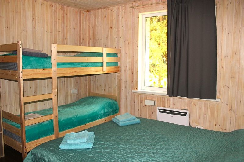 - 1 четырёхместный номер (двуспальная + двухъярусная кровати).
