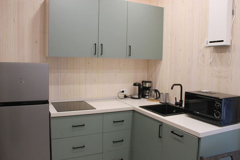 - общая кухня-гостиная, набор посуды и столовых приборов, холодильник, электроплита, кофеварка, посудомойка, микроволновка,