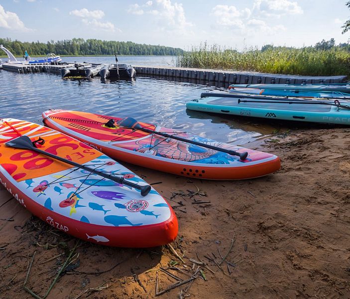 Управлять SUP-бордом может каждый, а какое наслаждение — искупаться прямо в центре озера, а потом загорать, лёжа на доске! Весло и спасательный жилет прилагается.