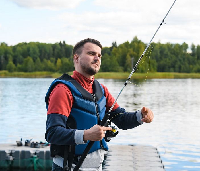 В наличии спиннинги, удочки и садки в аренду.