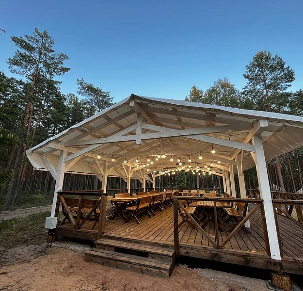 В беседке есть освещение и колонки. Возможно арендовать дополнительное оборудование.