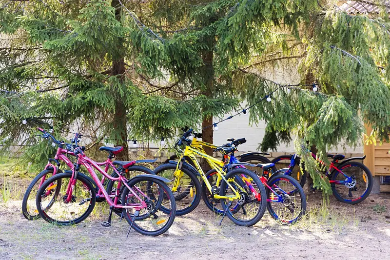 Есть 4 велосипеда для взрослых и 2 детских велосипеда, для прогулок по лесным дорожкам вокруг живописного озера.