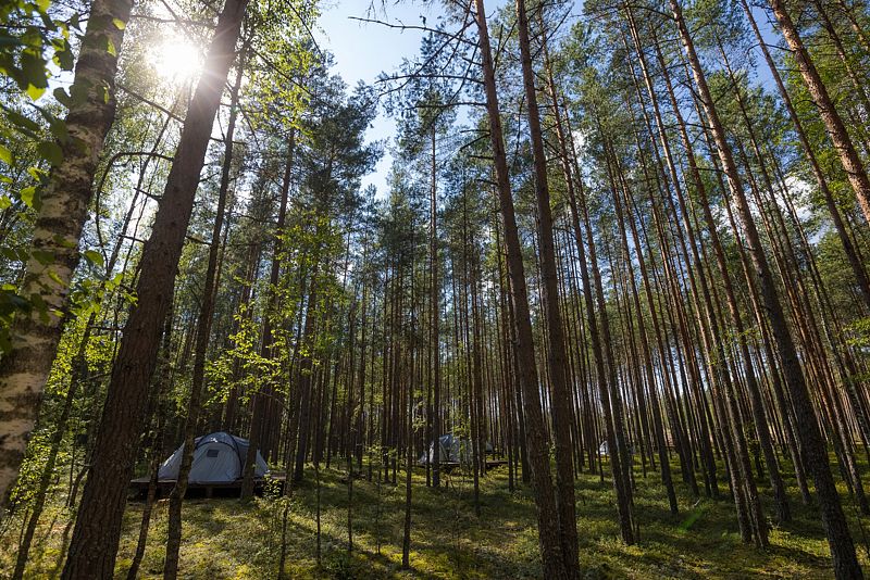 Уютные шатры для двоих или троих гостей прямо в сосновом лесу.