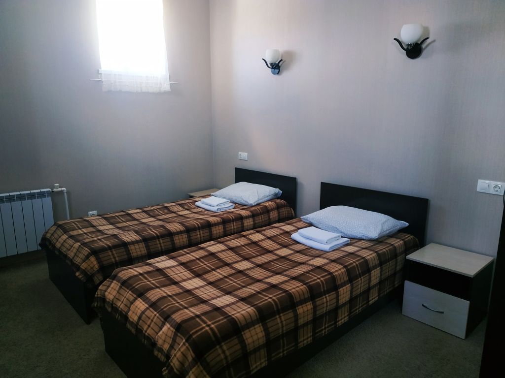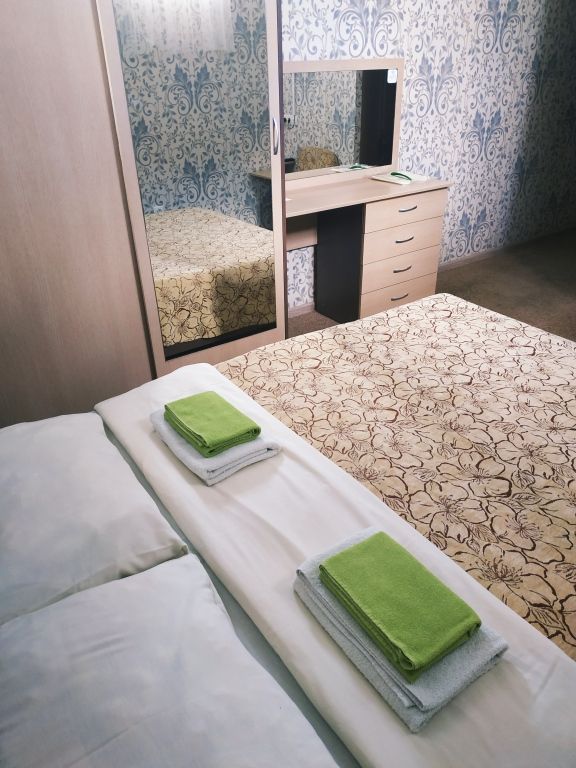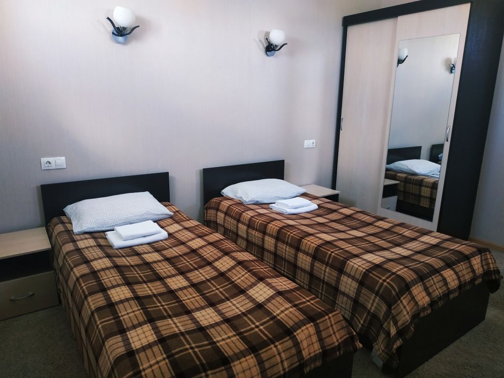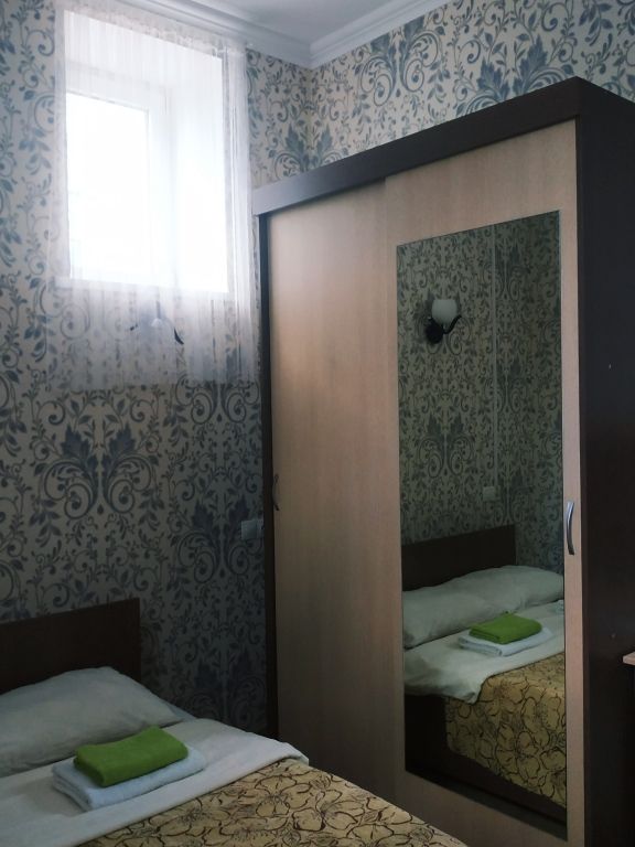 Короткий отпуск с друзьямиОтдых5.1.2017 заехали втроём в номер на троих. Цена=качество. Всё очень хорошо. Сотрудники приветливые, отзывчивые. В номере шкаф, 3 кровати , стол. Чай , кофе , кулер имеется. Единственно Яндекс карта ведёт дальше отеля)