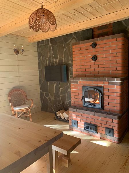Рубленый крестьянский дом на 5 человек. Кухня расположена на веранде. Удобства и душ в избе