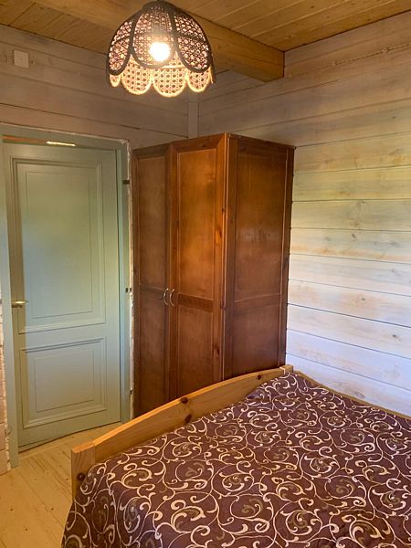 Дом располагает двумя уютными спальнями: одна с двуспальной кроватью размером 1,40 на 2 метра, а вторая с двумя односпальными кроватями размером 0,90 на 2 метра каждая. Для дополнительного гостя имеется комфортное кресло-кровать в гостиной.