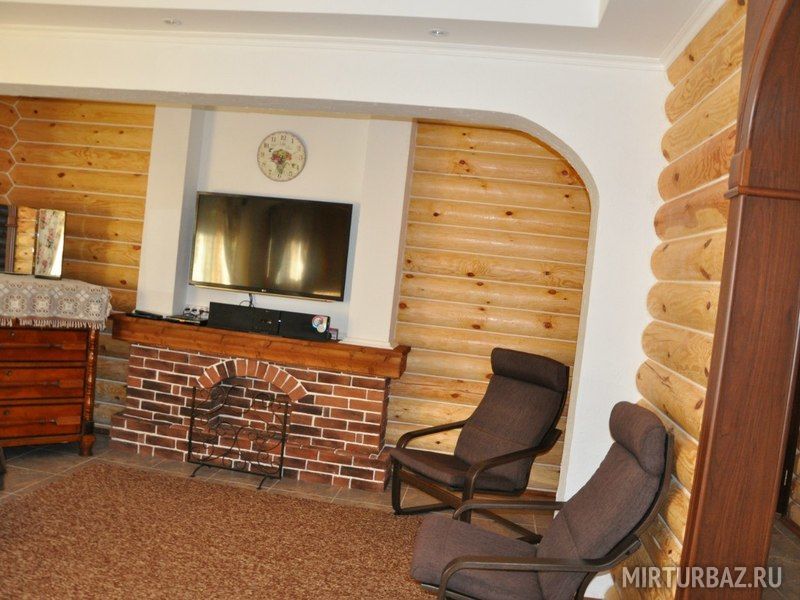 малый зал – «горница». Интерьер с элементами русского стиля в интерьере (телевизор, спутниковое ТВ, DVD, стол со стульями (6-8 человек), электрический камин;