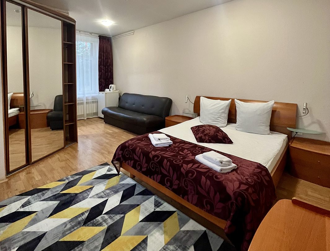 Просторный однокомнатный номер для двух человек с диваном.