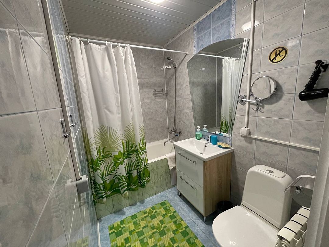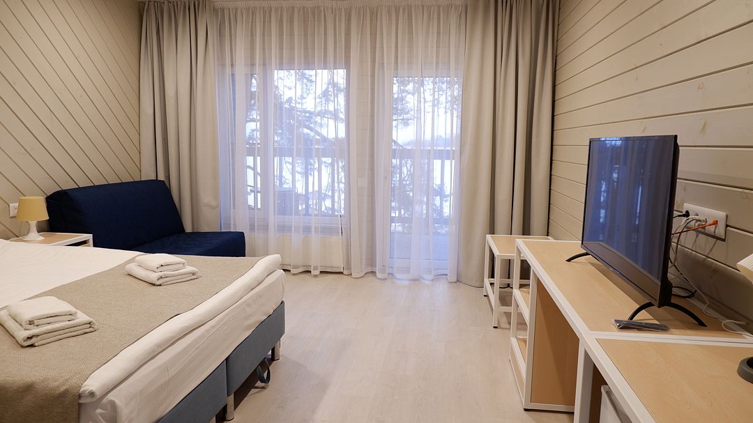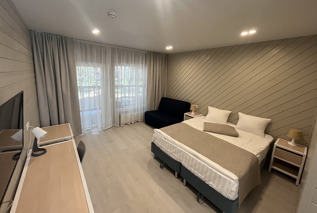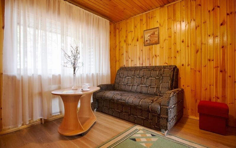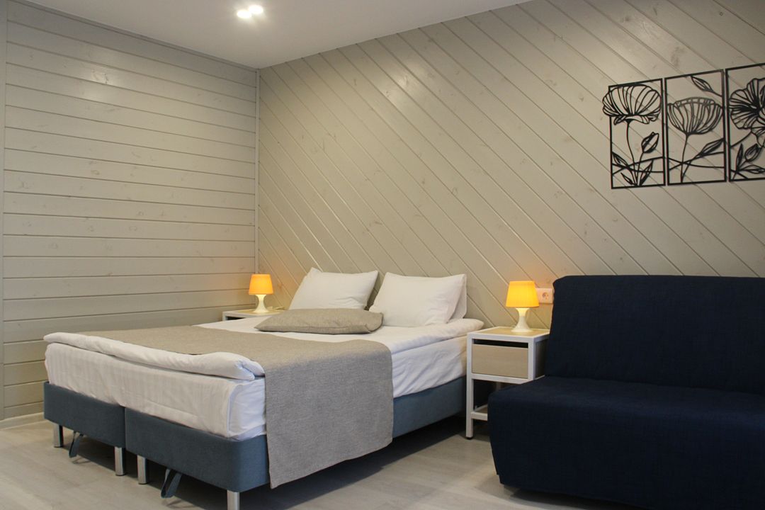 Просторный трехкомнатный номер с сауной. Идеально подойдет для размещения семьи или компании друзей.