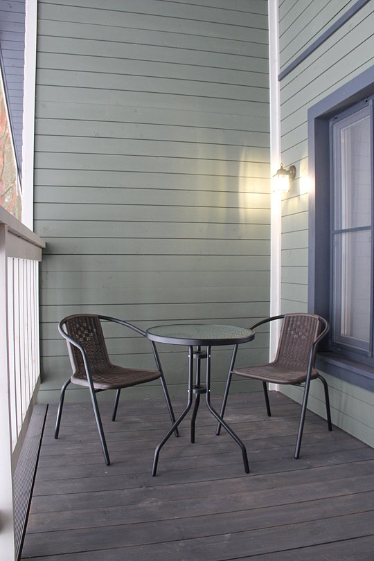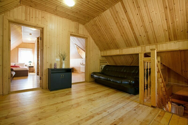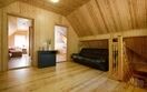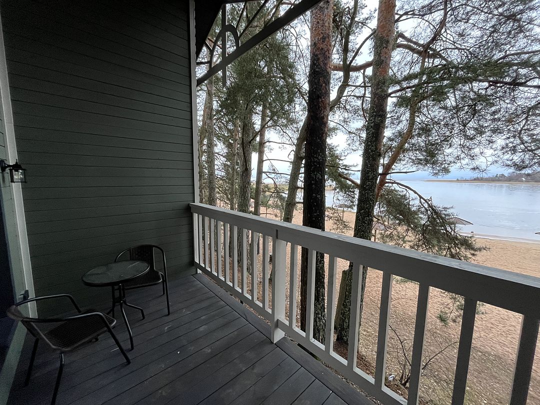 Номер расположен на втором этаже деревянного коттеджа с внешней металлической лестницей. Вид на озеро. Сауна входит в стоимость номера.