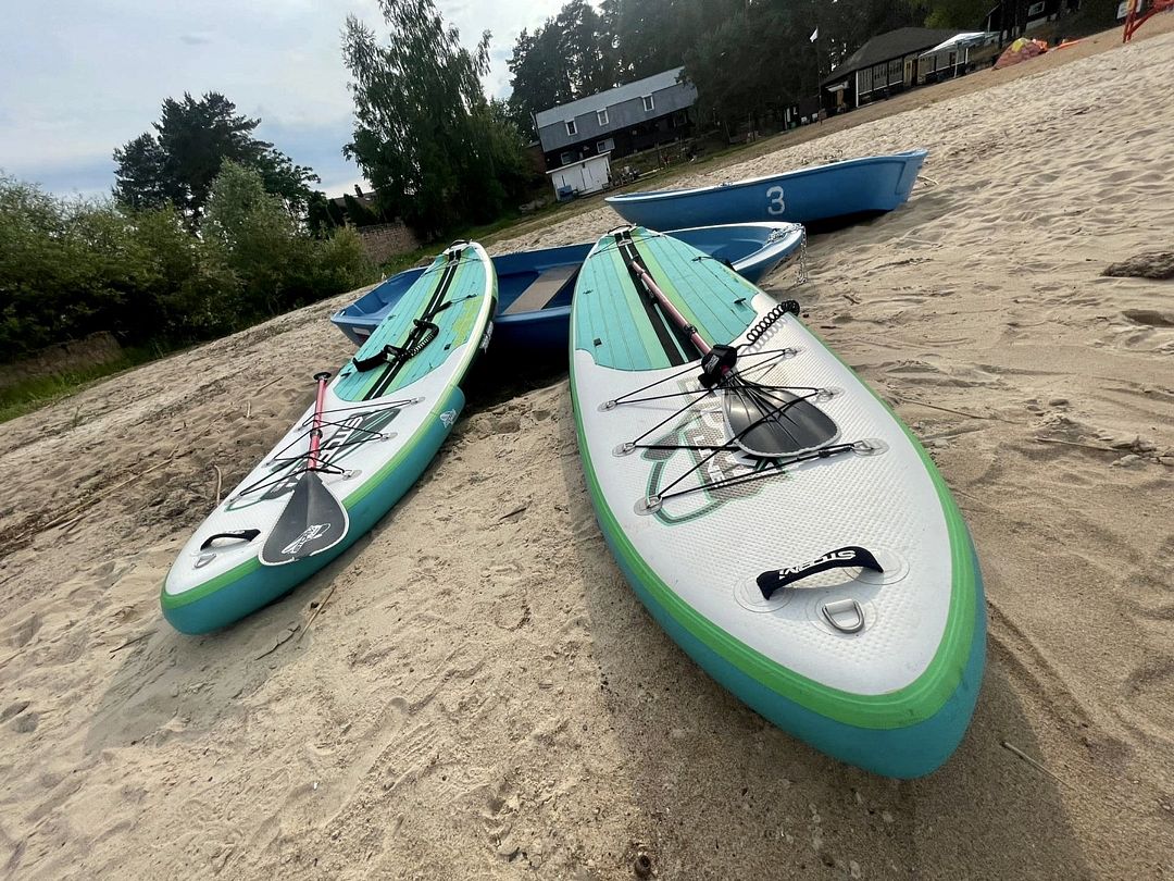 Гости пляжа могут воспользоваться надувными аттракционами на воде, прокатом лодок, катамаранов, гидроцикла, покататься на «Банане”, и осуществить прогулку на катере по акватории Псковского озера.