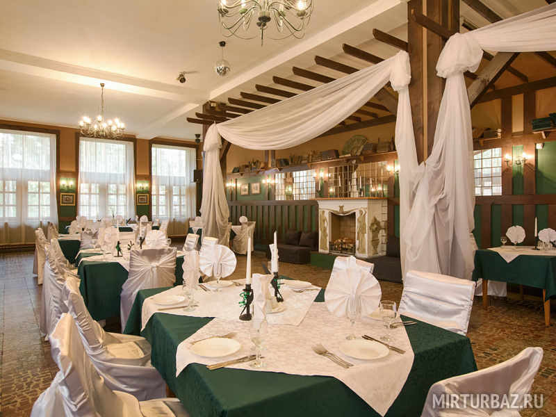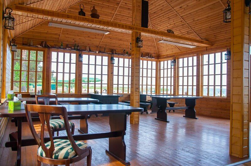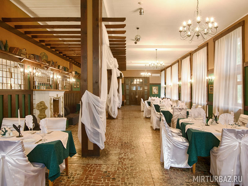 Питание гостей круглогодично осуществляется в ресторане «Пушкин», предлагающем русскую и европейскую кухни. Оборудованы летние площадки для проведения торжеств и иных мероприятий. На пляже работает летнее кафе с панорамным видом на озеро.